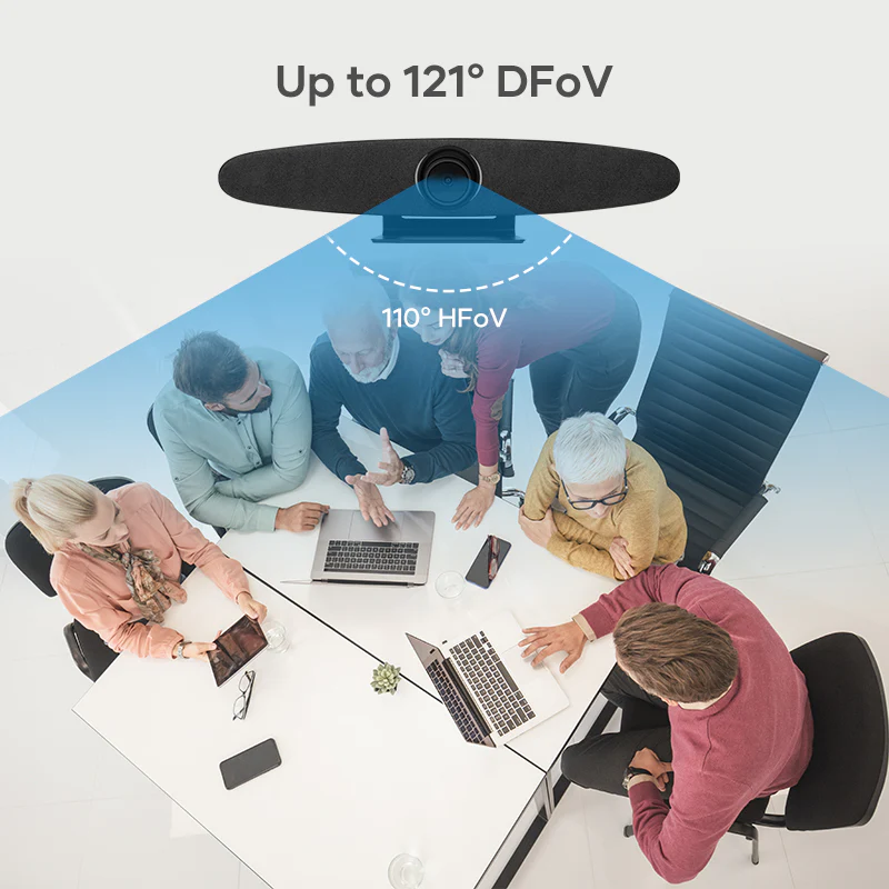Trường nhìn rộng 121° (trường nhìn ngang 110°), tích hợp PTZ (xoay ngang và nghiêng ±15°), giúp người tham dự dễ dàng tham gia cuộc họp hội nghị.