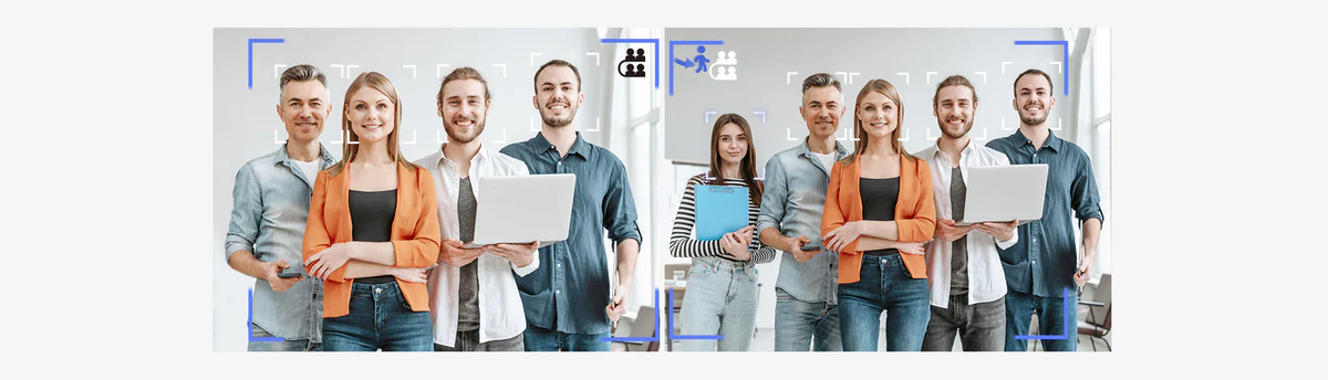 Thuật toán phân tích thông minh tích hợp hỗ trợ nhận dạng vị trí bằng âm thanh và chức năng ePTZ liên kết thông minh, tự động theo dõi người nói và chuyển đổi màn hình một cách thông minh để đảm bảo người nói luôn xuất hiện trên màn hình.
