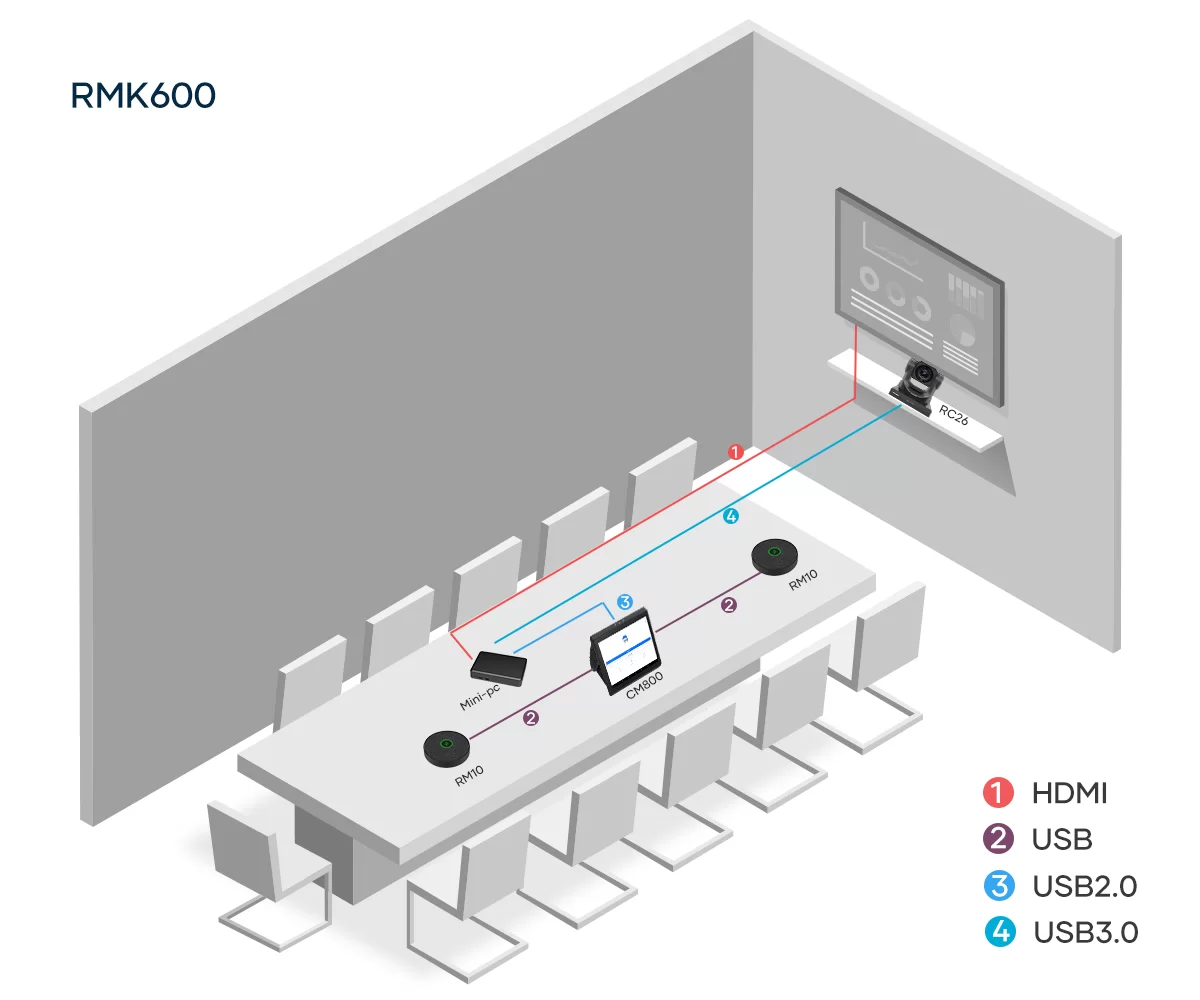 RMK600 là giải pháp Rocware cho phòng họp lớn (diện tích từ 20-40m2), gói thiết bị bao gồm: 1 camera PTZ HD1080p, 2 micro mở rộng, 1 bộ điều khiển trung tâm, 1 máy tính mini. Cung cấp trải nghiệm hội nghị truyền hình one-stop với chất lượng hình ảnh và âm thanh tuyệt vời.