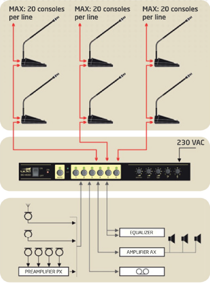 Hệ thống hội nghị, hội thảo UDE bao gồm các thiết bị thành phần: