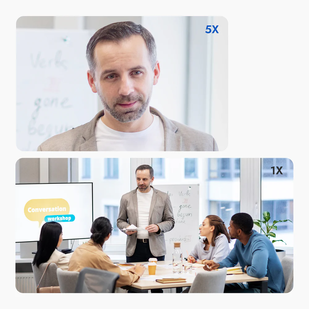 Hệ thống loa toàn dải (full-range) tích hợp cho chất lượng âm thanh trung thực, rõ ràng và ổn định, đảm bảo trải nghiệm hội nghị trực tuyến liền mạch và tự nhiên.