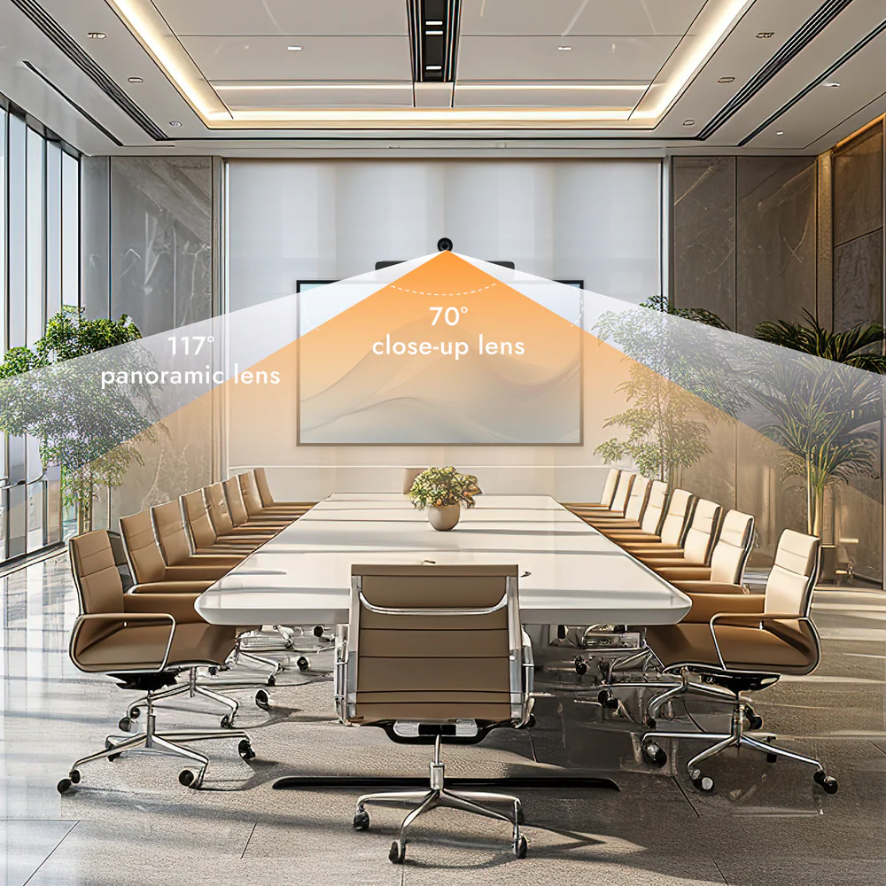 RB20 sở hữu thiết kế ống kính kép, kết hợp ống kính toàn cảnh và cận cảnh với cảm biến CMOS UHD 4K. Điều này đảm bảo hình ảnh sắc nét, chi tiết cho mọi cuộc họp. Thiết bị này giải quyết những vấn đề thường gặp như chất lượng hình ảnh kém và phạm vi phủ sóng hạn chế, mang đến tầm nhìn rõ nét cho cả toàn bộ phòng họp và từng diễn giả.