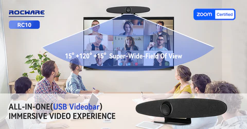 Rocware RC10, bộ camera 4K UHD tích hợp micro và loa đã được Zoom Video Communications cấp chứng nhận phù hợp với đầy đủ tính năng của ứng dụng Zoom Rooms. Rocware RC10 cung cấp cho người dùng Zoom Rooms một camera chất lượng cao và dải 4 micro cùng với loa toàn dải song công, mang đến chất lượng hình ảnh video và âm thanh tuyệt vời cho các cuộc họp kết hợp.