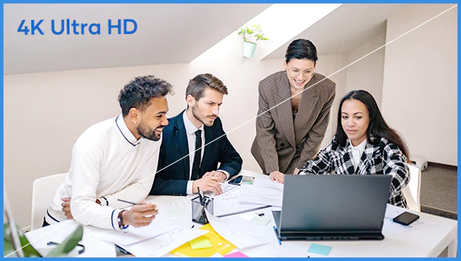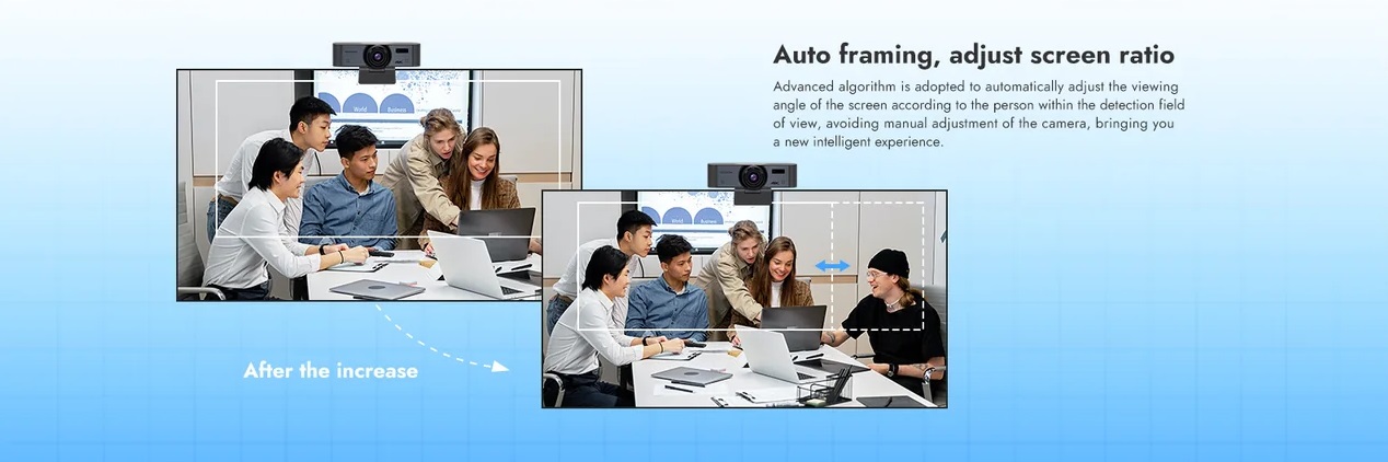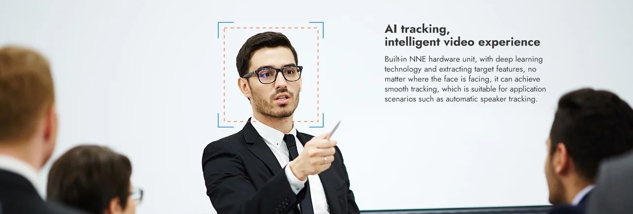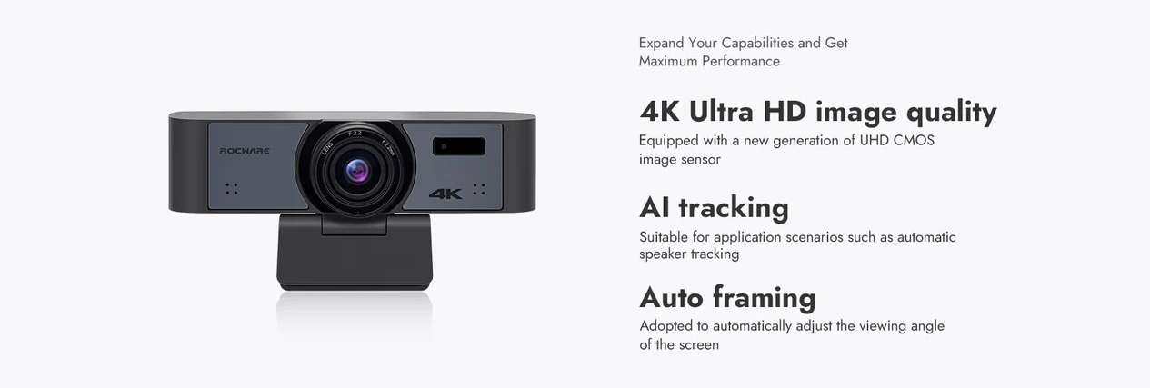 RC16 is equipped with a new generation of UHD CMOS image sensor, with more accurate native resolution and richer color information. With a 110°ultra-large viewing angle and low-distortion 4K lens, the panoramic field of view is unobstructed. Support Auto framing and AI tracking.