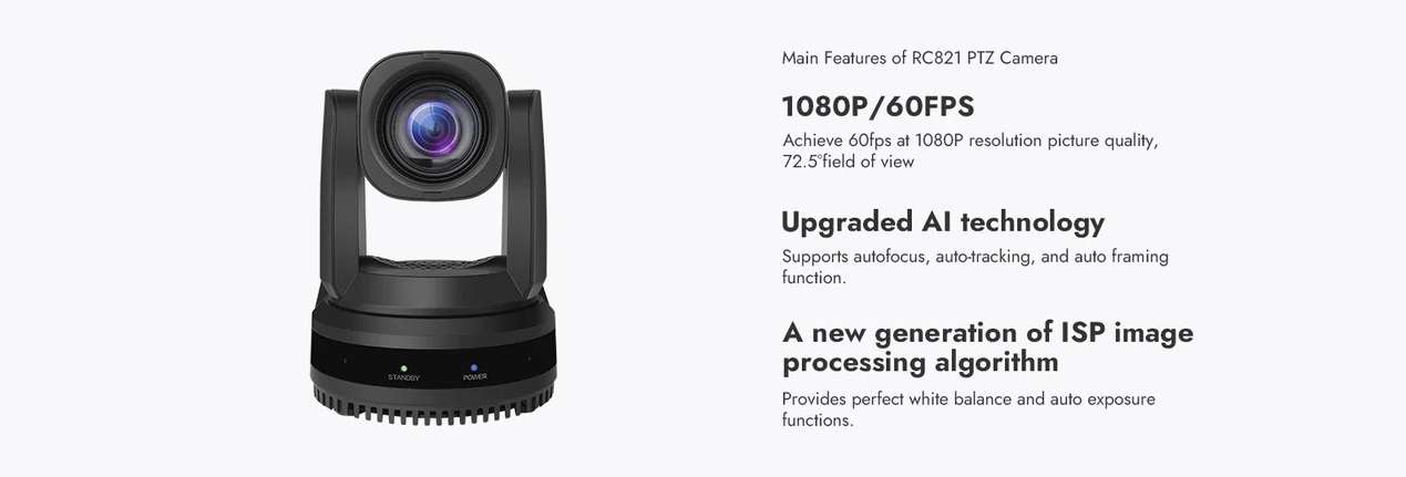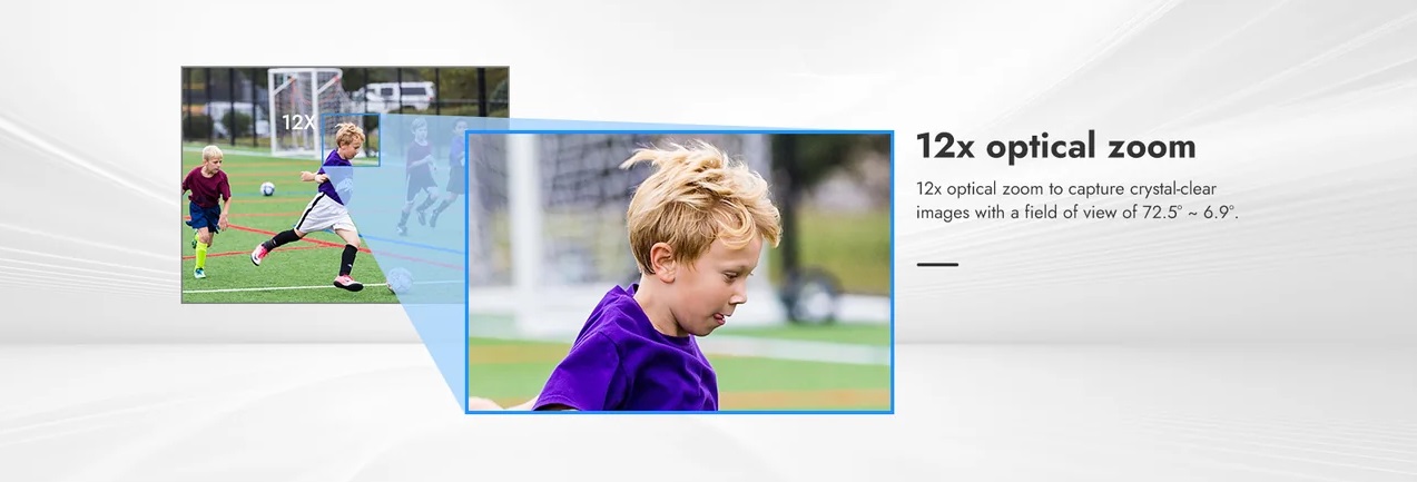 RC821 equipped with a 12x optical zoom lens, which can achieve unparalleled ultra-high-resolution image quality and lossless effects that are closer to vision. Upgraded AI technology enables accurate human tracking and auto framing. The new-generation ISP image processing algorithm and leading auto-focus technology enable the lens to focus quickly, accurately and stably, and the image output performance is significantly improved.