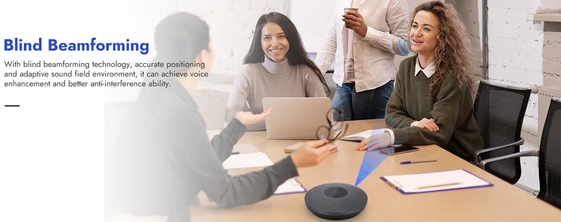 - Microphone Array : Built-in 6 high SNR microphones form a ring array, 360° omnidirectional pickup